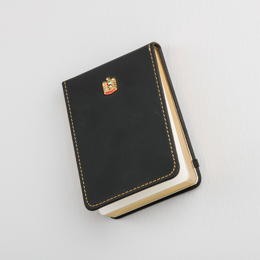 Pu mini note with uae falcon 3D METAL & gold rim, cover with 80 sheets of A6 size white paper